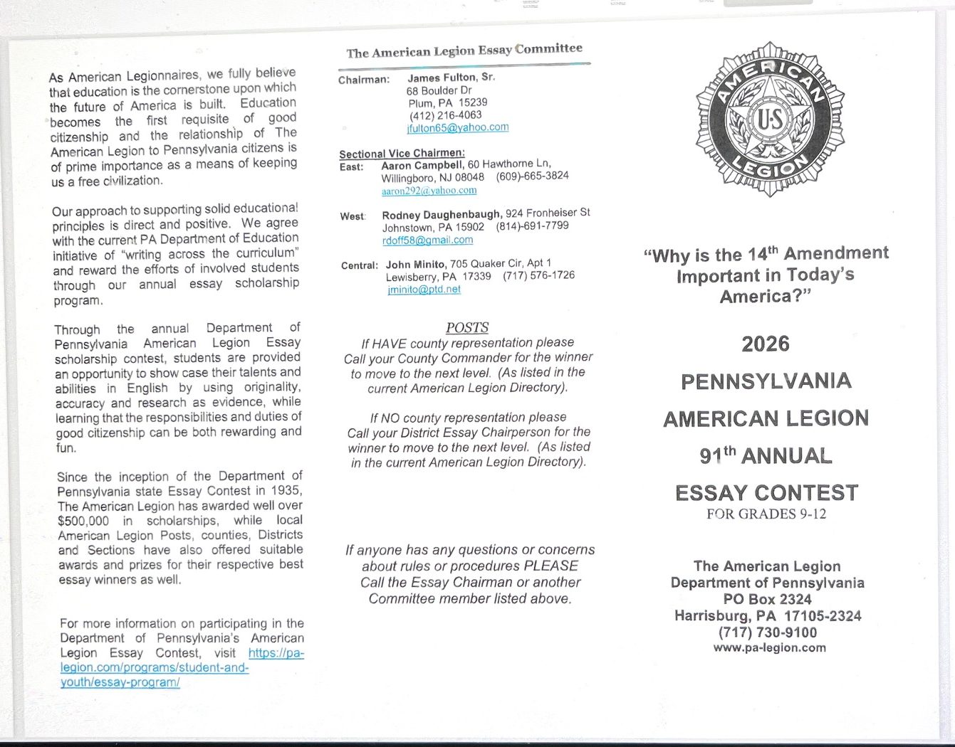 American Legion Essay Contest Scholarship - Ambridge Area School District